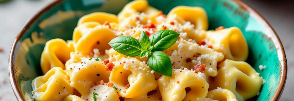 · Gefüllte Tortellini mit Käse-Sahne-Sauce + Salat
